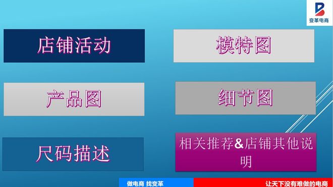 视觉营销就是配合产品结构,活动安排,时效性等因素的变化对店铺的结构,设计进行实时调整从而在店铺访问深度,用户粘度等方面达到提升。通过运营策划,更深一步的去规划做好店铺,让买家第一感觉就宾至如归!